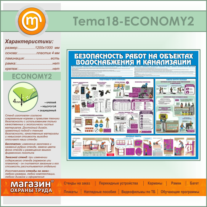 Стенд «Безопасность работ на объектах водоснабжения и канализации» (TM-18-ECONOMY2) в Верее купить