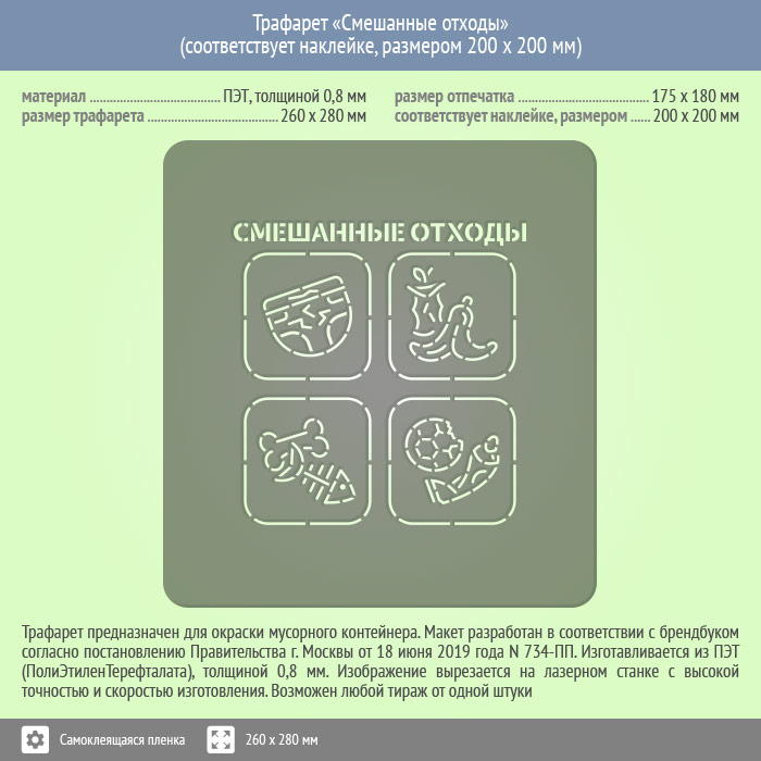 Трафарет «Смешанные отходы» (соответствует наклейке, размером 200х200 мм) в Верее купить