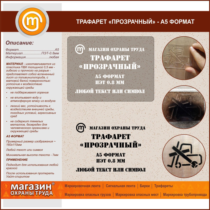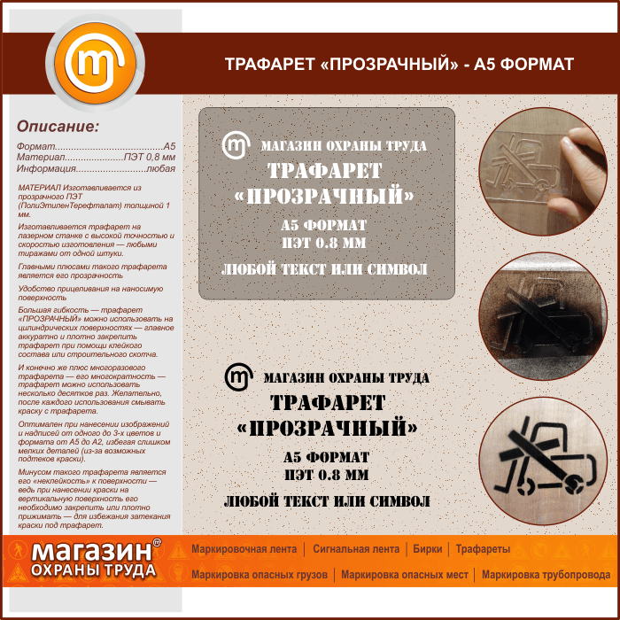 Трафарет «ПРОЗРАЧНЫЙ» (А5 формат, ПЭТ 0,8 мм) в Верее купить