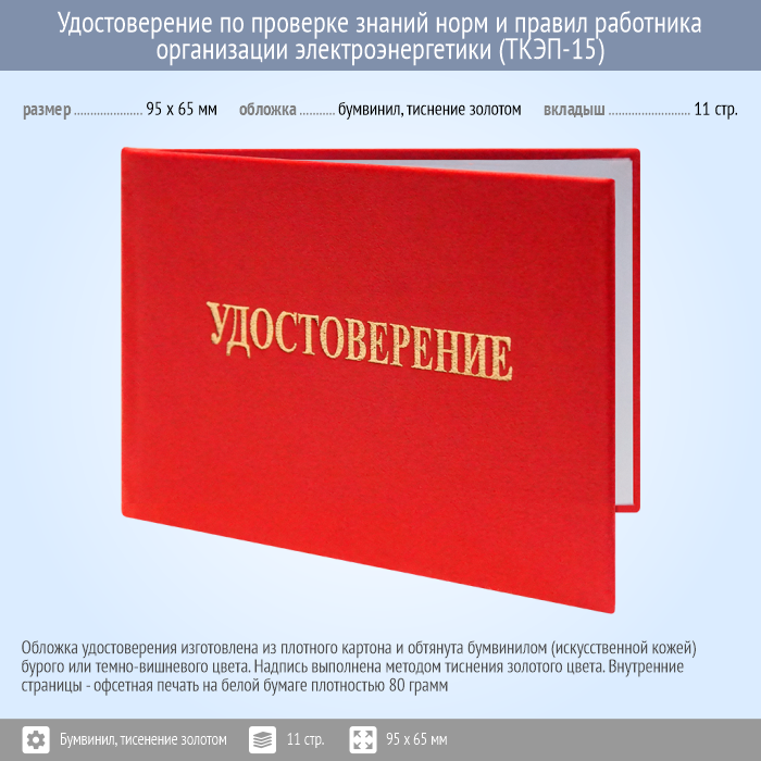 Бланк удостоверения по проверке знаний норм и правил работника организации электроэнергетики (ТКЭП-15) в Верее купить