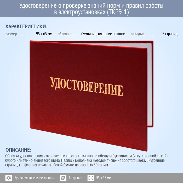 Бланк удостоверения о проверке знаний норм и правил работы в электроустановках (новый образец 2021 года) (ТКРЭ-1) в Верее купить