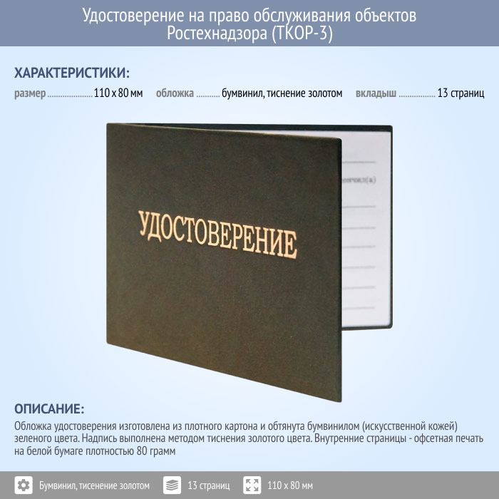 Бланк удостоверения на право обслуживания объектов Ростехнадзора (ТКОР-3) в Верее купить