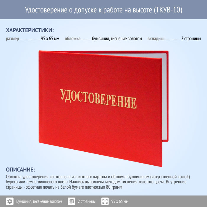 Бланк удостоверения о допуске к работе на высоте (ТКУВ-10) в Верее купить