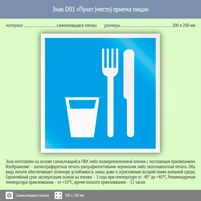 Знак D01 «Пункт (место) приема пищи» (пленка, 200х200 мм) в Верее купить