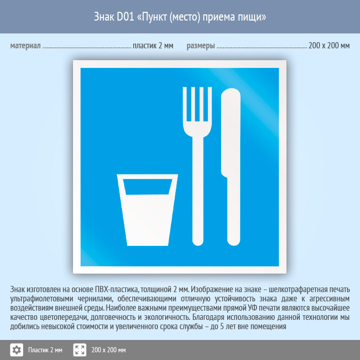 Знак D01 «Пункт (место) приема пищи» (пластик, 200х200 мм) в Верее купить