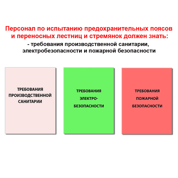 Персонал при испытании предохранительных поясов, переносных лестниц и стремянок | Персонал при испытании предохранительных поясов, переносных лестниц и стремянок |