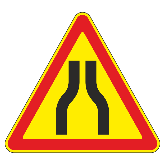 Дорожный знак 1.20.1 «Сужение дороги» (временный) (металл 0,8 мм, IV типоразмер: сторона 1500 мм, С/О пленка: тип А коммерческая) в Верее купить
