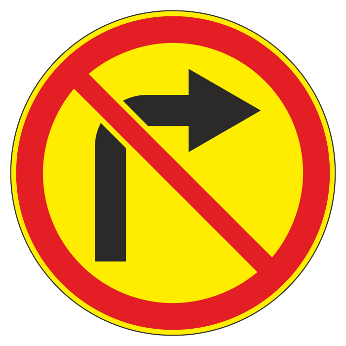 Дорожный знак 3.18.1 «Поворот направо запрещен» (временный) (металл 0,8 мм, II типоразмер: диаметр 700 мм, С/О пленка: тип А инженерная) в Верее купить
