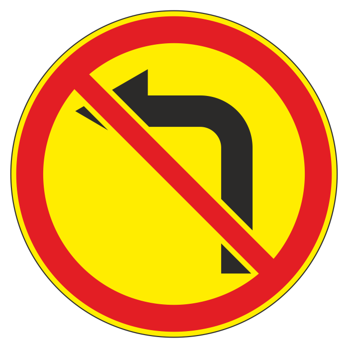 Дорожный знак 3.18.2 «Поворот налево запрещен» (временный) (металл 0,8 мм, II типоразмер: диаметр 700 мм, С/О пленка: тип А коммерческая) в Верее купить
