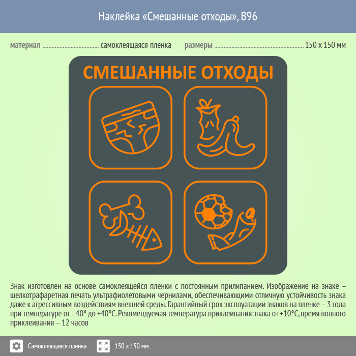 Наклейка на бак «Смешанные отходы», B96 (пленка, 150х150 мм) в Верее купить