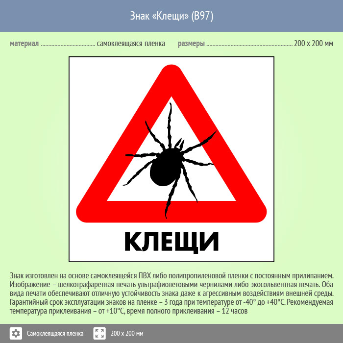 Знак «Клещи», B97 (пленка, 300х300 мм) в Верее купить
