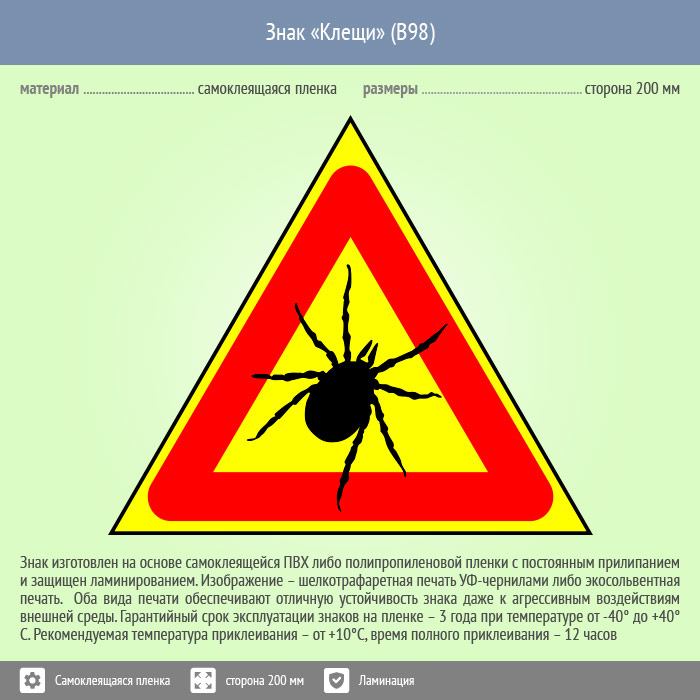Знак «Клещи», B98 (пленка c ламинированием, сторона 300 мм) в Верее купить