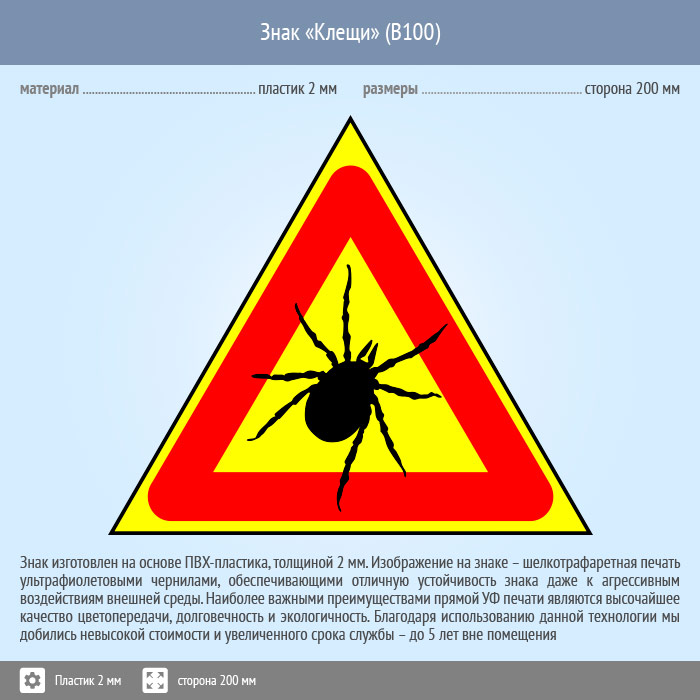 Знак «Опасно! Клещи», B100 (пластик, сторона 300 мм) в Верее купить