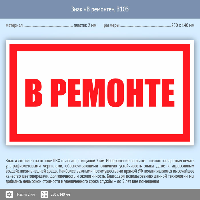 Знак «В ремонте», B105 (пластик, 250х140 мм) в Верее купить