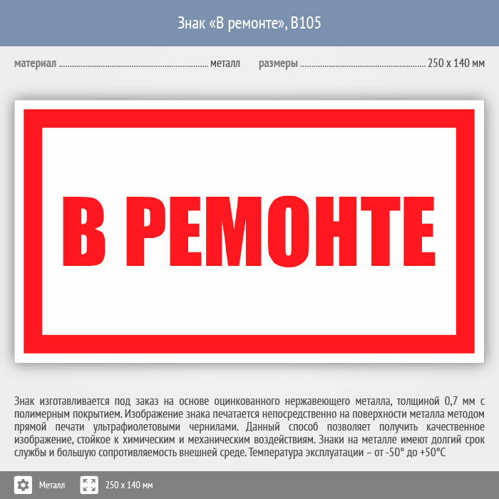 Знак «В ремонте», B105 (металл, 250х140 мм) в Верее купить