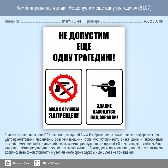Комбинированный знак «Не допустим еще одну трагедию», B107 (пластик, 400х600 мм) в Верее купить