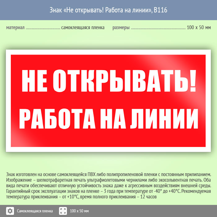 Знак «Не открывать! Работа на линии», B116 (пленка, 100х50 мм) в Верее купить