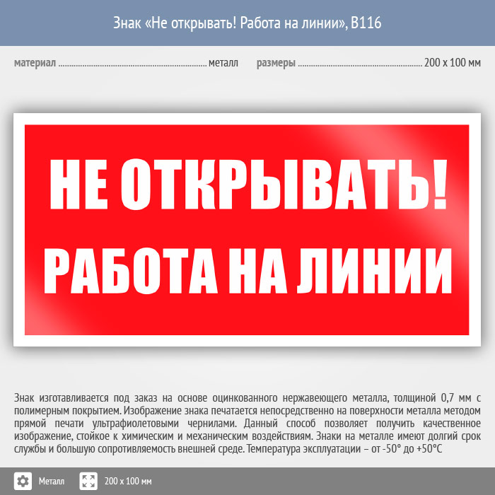 Знак «Не открывать! Работа на линии», B116 (металл, 200х100 мм) в Верее купить