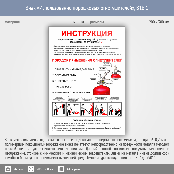 Знак «Использование порошковых огнетушителей», B16.1 (металл, 200х300 мм) в Верее купить