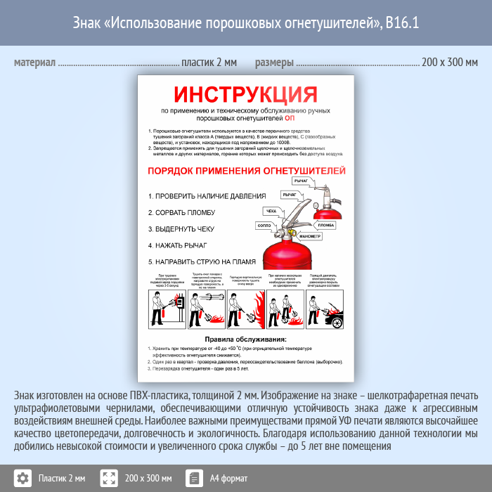Знак «Использование порошковых огнетушителей», B16.1 (пластик, 200х300 мм) в Верее купить