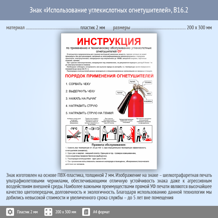 Знак «Использование углекислотных огнетушителей», B16.2 (пластик, 200х300 мм) в Верее купить