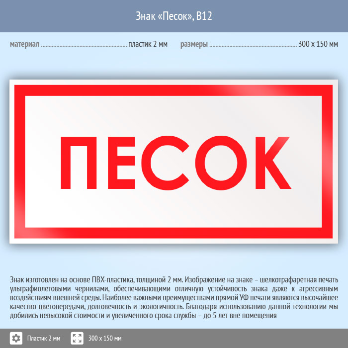 Знак «Песок», B12 (пластик, 300х150 мм) в Верее купить