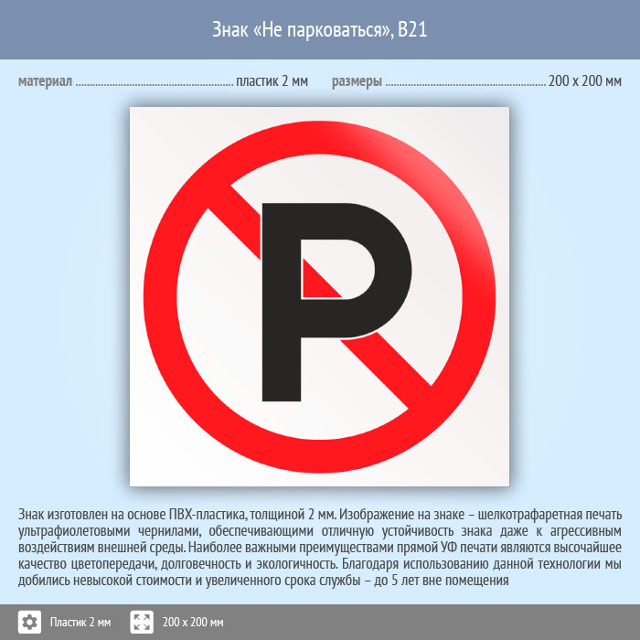 Знак «Не парковаться», B21 (пластик, 200х200 мм) в Верее купить