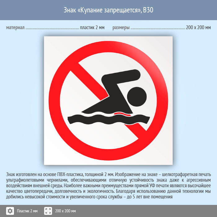 Знак «Купание запрещено», B30 (пластик, 200х200 мм) в Верее купить