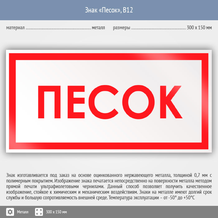 Знак «Песок», B12 (металл, 300х150 мм) в Верее купить