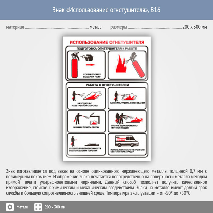 Знак «Использование огнетушителя», B16 (металл, 200х300 мм) в Верее купить
