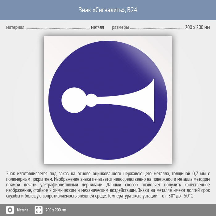 Знак «Сигналить», B24 (металл, 200х200 мм) в Верее купить