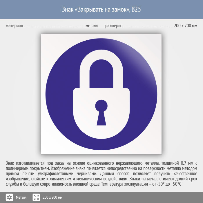 Знак «Закрывать на замок», B25 (металл, 200х200 мм) в Верее купить