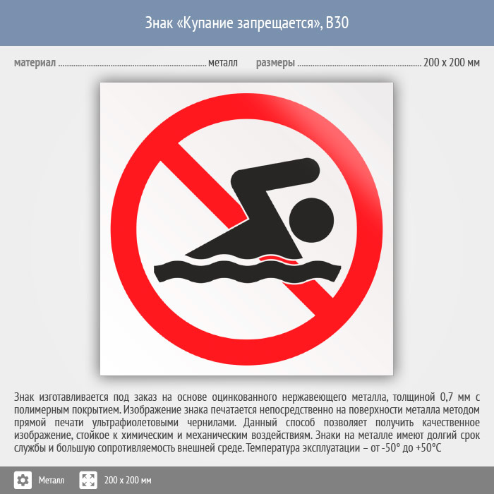 Знак «Купание запрещено», B30 (металл, 200х200 мм) в Верее купить