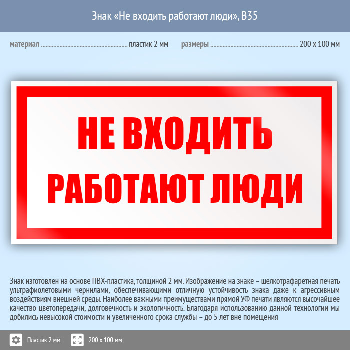 Знак «Не входить работают люди», B35 (пластик, 200х100 мм) в Верее купить