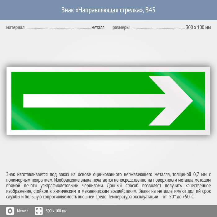 Знак «Направляющая стрелка», B45 (металл, 300х100 мм) в Верее купить