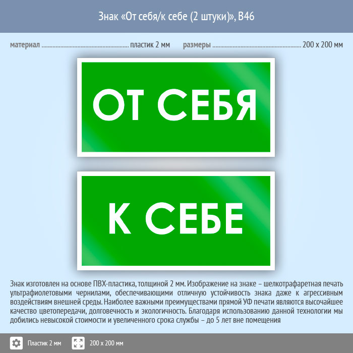 Знак «От себя/к себе», B46 (2 штуки, пластик, 200х100 мм) в Верее купить