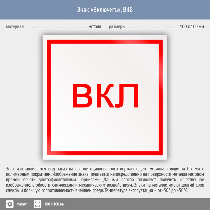 Знак «Включить», B48 (металл, 100х100 мм) в Верее купить