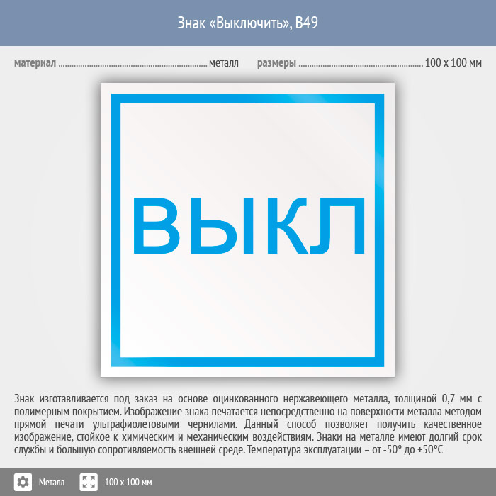 Знак «Выключить», B49 (металл, 100х100 мм) в Верее купить