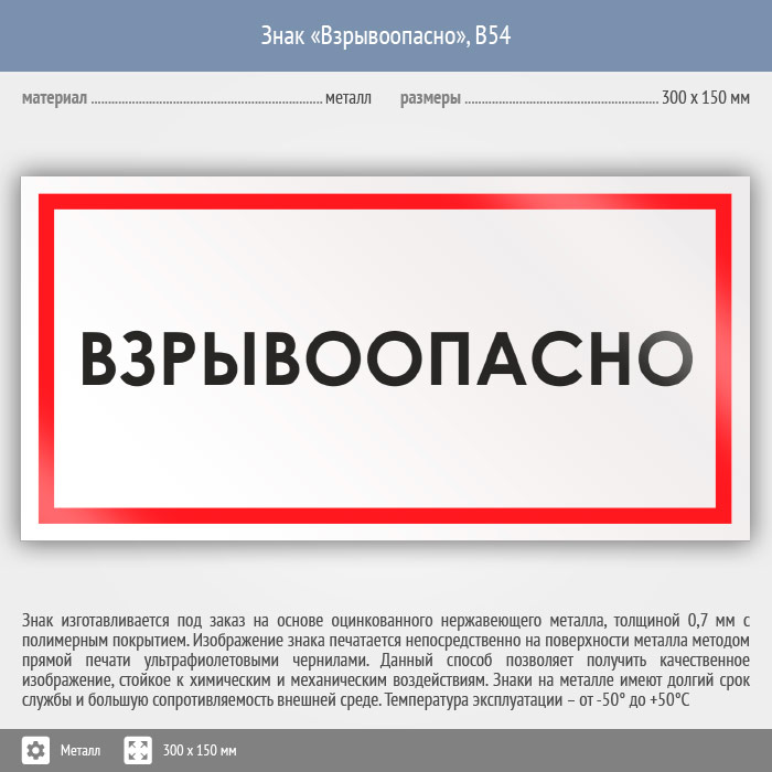 Знак «Взрывоопасно», B54 (металл, 300х150 мм) в Верее купить
