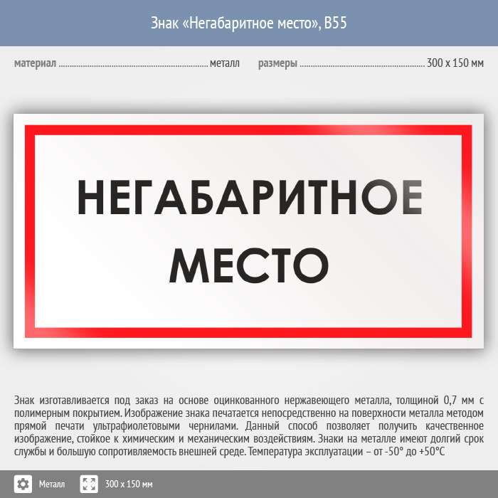 Знак «Негабаритное место», B55 (металл, 300х150 мм) в Верее купить