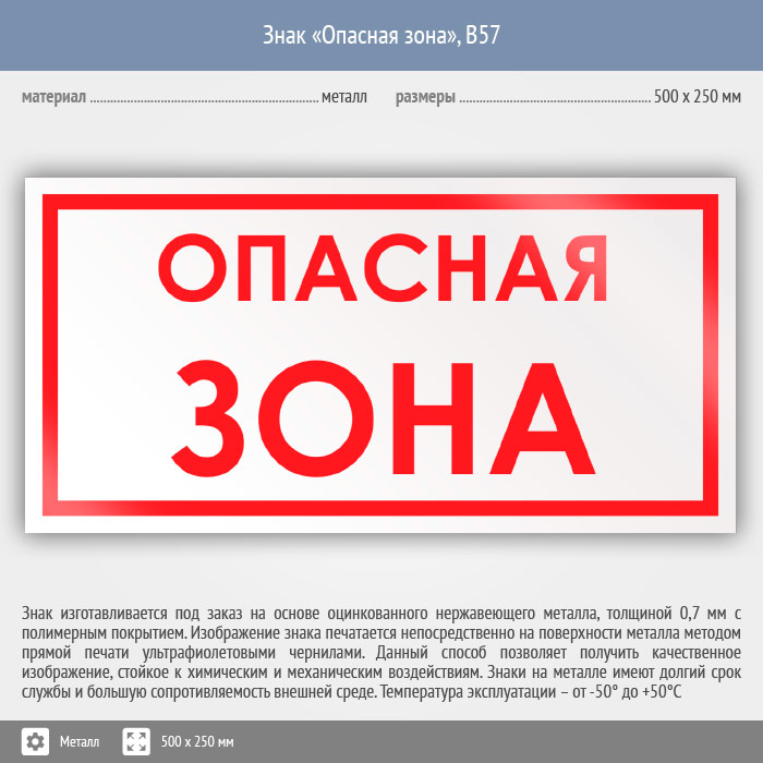 Знак «Опасная зона», B57 (металл, 500х250 мм) в Верее купить
