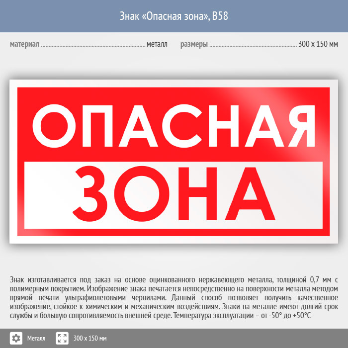 Знак «Опасная зона», B58 (металл, 300х150 мм) в Верее купить