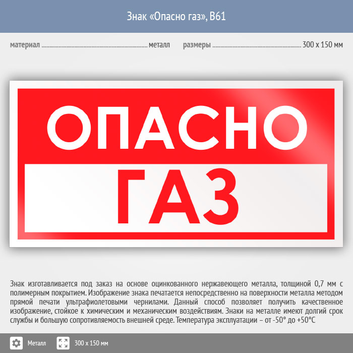 Знак «Опасно газ», B61 (металл, 300х150 мм) в Верее купить