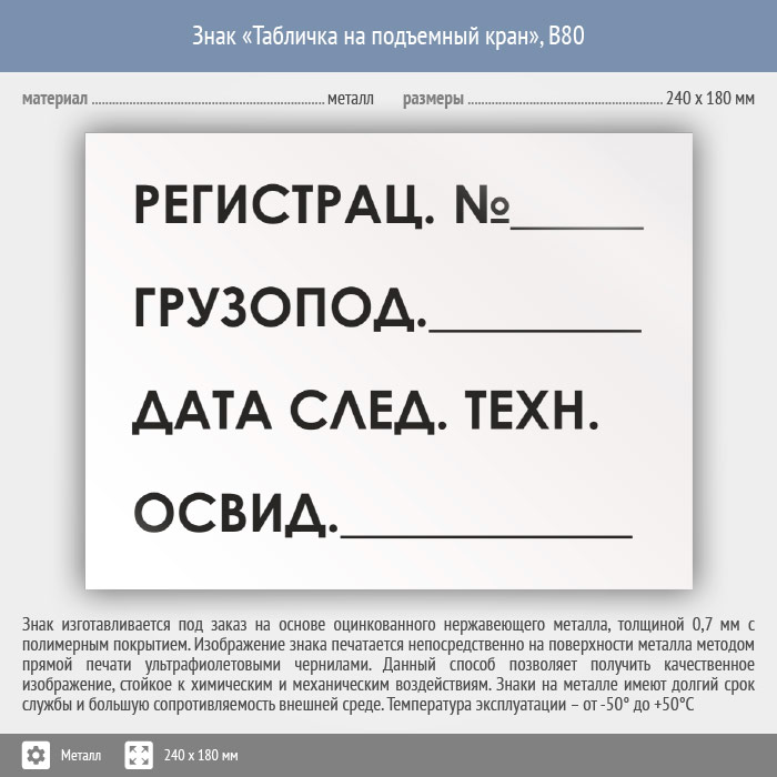 Знак «Табличка на подъемный кран», B80 (металл, 240х180 мм) в Верее купить