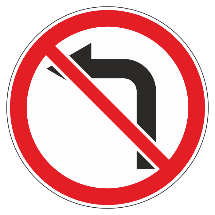 Дорожный знак 3.18.2 «Поворот налево запрещен» (металл 0,8 мм, II типоразмер: диаметр 700 мм, С/О пленка: тип В алмазная) в Верее купить