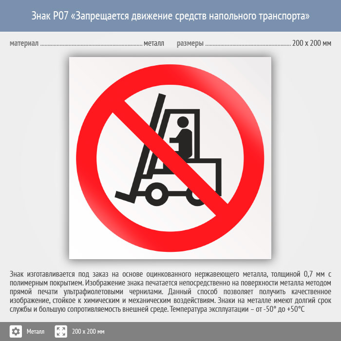 Знак P07 «Запрещается движение средств напольного транспорта» (металл, 200х200 мм) в Верее купить
