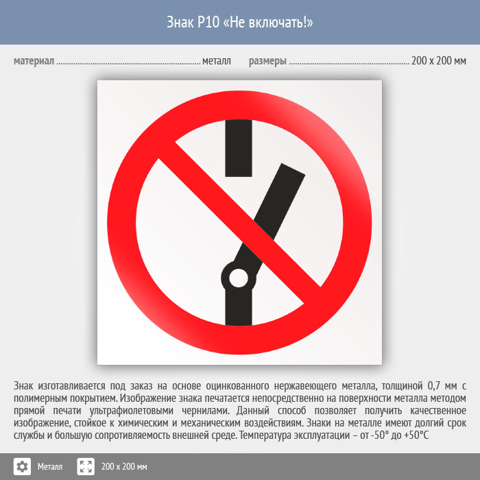 Знак P10 «Не включать!» (металл, 200х200 мм) в Верее купить
