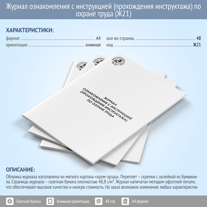 Журнал ознакомления с инструкцией (прохождения инструктажа) по охране труда (Ж21) в Верее купить