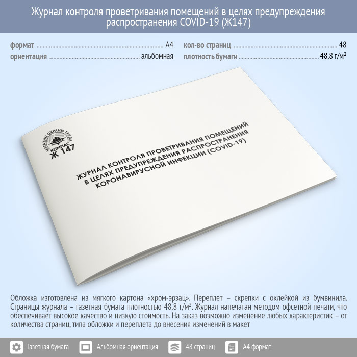 Журнал контроля проветривания помещений в целях предупреждения распространения коронавирусной инфекции (COVID-19) (48 стр., Ж147) в Верее купить