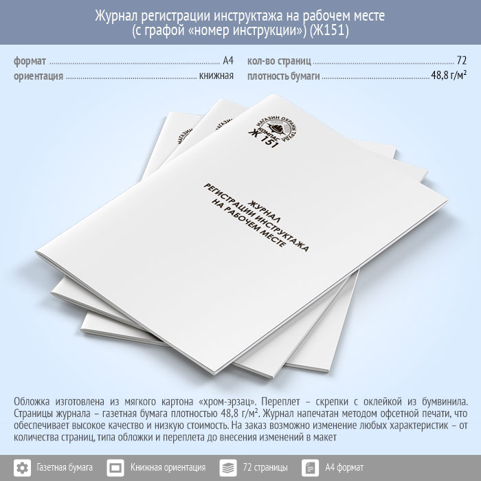 Журнал регистрации инструктажа на рабочем месте (с графой «номер инструкции») (72 стр., Ж151) в Верее купить